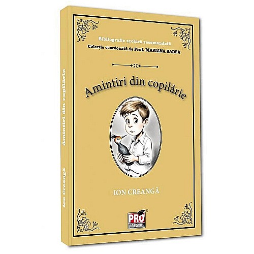 Amintiri din copilarie, de Ion Creanga, face parte din colectia de Bibliografie scolara recomandata, coordonata de prof. MARIANA BADEA. Utila pentru cunoasterea principalelor opere literare studiate la scoala, colectia se remarca printr-o atenta ingrijire a textului, astfel incat copiii carora li se adreseaza aceste titluri sa beneficieze de o experienta a lecturii folositoare, menita sa accentueze aplecarea spre literatura romana si scriitorii care au marcat diversele perioade si curente.