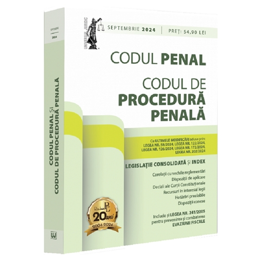 Editia a 32-a (revizuita) a lucrarii, Codul penal si Codul de procedura penala: septembrie 2024, tiparita pe hartie alba de calitate superioara si ingrijita de prof. univ. dr. Dan Lupascu, cuprinde ultimele modificari aduse prin: Legea nr. 58/2024Legea nr. 122/2024Legea nr. 126/2024Legea nr. 172/2024Legea nr. 202/2024.