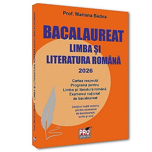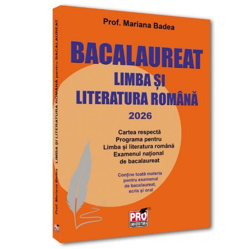 „Limba și literatura româna pentru bacalaureat 2026”, semnata de prof. Mariana Badea, reprezinta o sinteza ampla și actualizata a întregii programe de examen. Volumul reunește, într-o structura clara și logica, toate perioadele, curentele și autorii canonici, prezentându-le prin eseuri explicate, analize literare și exemple aplicate, concepute astfel încât sa faciliteze înțelegerea și fixarea noțiunilor esențiale.