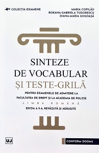 Prezenta lucrare a luat nastere ca urmare a unei frumoase colaborari intre studentii Facultatii de Drept si Editura Universul Juridic. Inedita prin cuprinsul sau, sinteze de vocabular si teste-grila atent selectate, asociate cu tematica de admitere la Facultatea de Drept sau la Academia de Politie, aceasta reprezinta o provocare, stimuland si gestionand atat cunostintele, cat si emotiile specifice acestor examene de admitere.