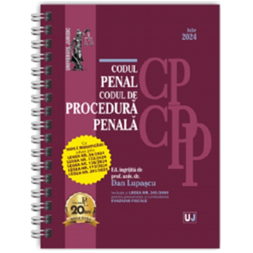 Lucrarea Codul penal si Codul de procedura penala Iulie 2024 (editie spiralata), tiparita pe hartie alba de calitate superioara si ingrijita de prof. univ. dr. Dan Lupascu, include noile modificari aduse prin: Legea nr. 58/2024 (M. Of. nr. 243 din 21 martie 2024); Legea nr. 122/2024 (M. Of. nr. 414 din 7 mai 2024); Legea nr. 126/2024 (M. Of. nr. 437 din 13 mai 2024); Legea nr. 172/2024 (M. Of. nr. 510 din 31 mai 2024); Legea nr. 202/2024 (M. Of. nr. 607 din 28 iunie 2024).