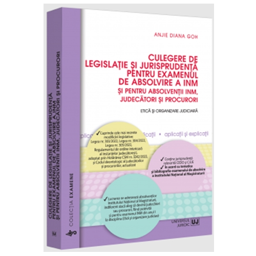 Prezenta carte elaborata in acord cu tematica și bibliografia examenului de absolvire a Institutului Național al Magistraturii cuprinde legislația și elementele de jurisprudența necesare pentru examenul la disciplina, etica și organizare judiciara, adresandu-se absolvenților Institutului Național al Magistraturii, indiferent daca aleg sa devina judecatori sau procurori.