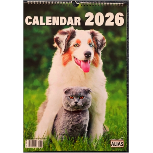 Calendar 2026 – Câini și pisici (6 file, cu spiră, de perete)